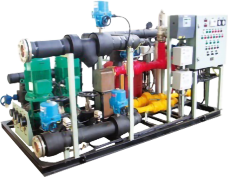 船用定壓裝置是將船舶中央空調(diào)循環(huán)冷(熱)媒水系統(tǒng)中的換熱、冷(熱)水循環(huán)、定壓、排氣、補(bǔ)水、過(guò)濾、水處理及電氣控制等諸多功能集于一身的成套組裝式船用設(shè)備。裝置由采暖換熱裝置(板式換熱器)、蒸汽流量調(diào)節(jié)閥組、疏水閥組、定壓膨脹隔膜罐、自動(dòng)排氣裝置、壓差控制器、補(bǔ)水隔離裝置、離子水處理器、及電動(dòng)、手動(dòng)閥件和控制單元等組成。